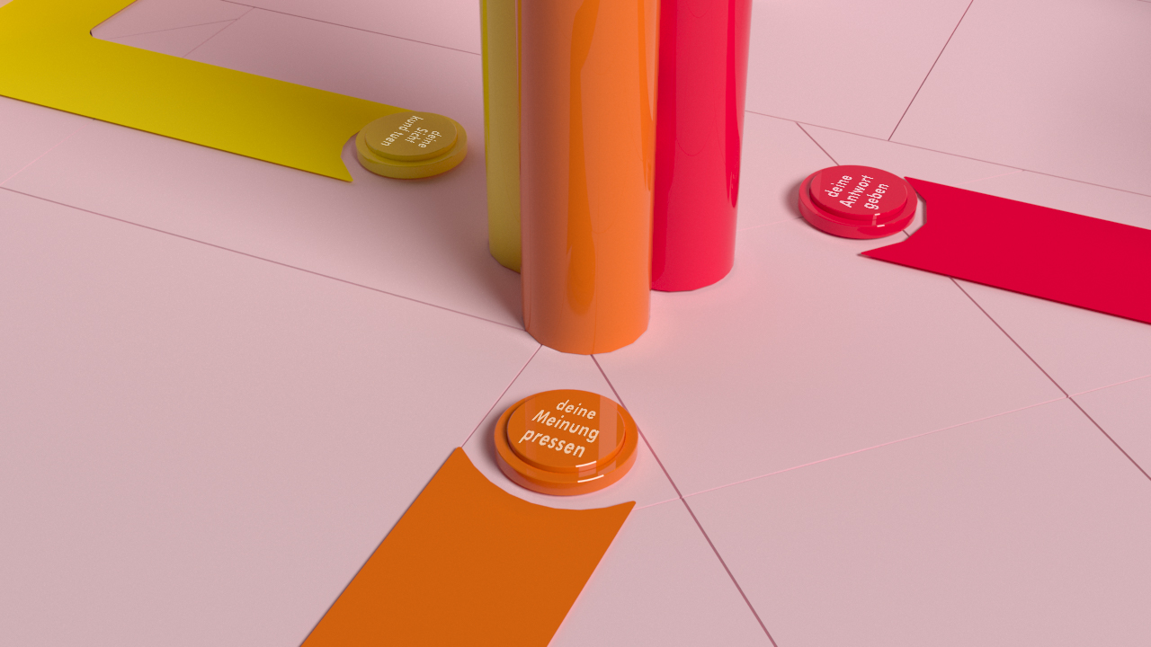 COM WAI TO is a group of interactive objects, designed to encourage communication, debate and the exchange of ideas while people wait for public transport. In addition to two central objects, there are also floor signaling next to benches, ticket distributors and information signs that would motivate people to dive into social and political issues. Additionally, ticket validators print questions and observation tasks on your ticket in order to sharpen the users’ perception.
