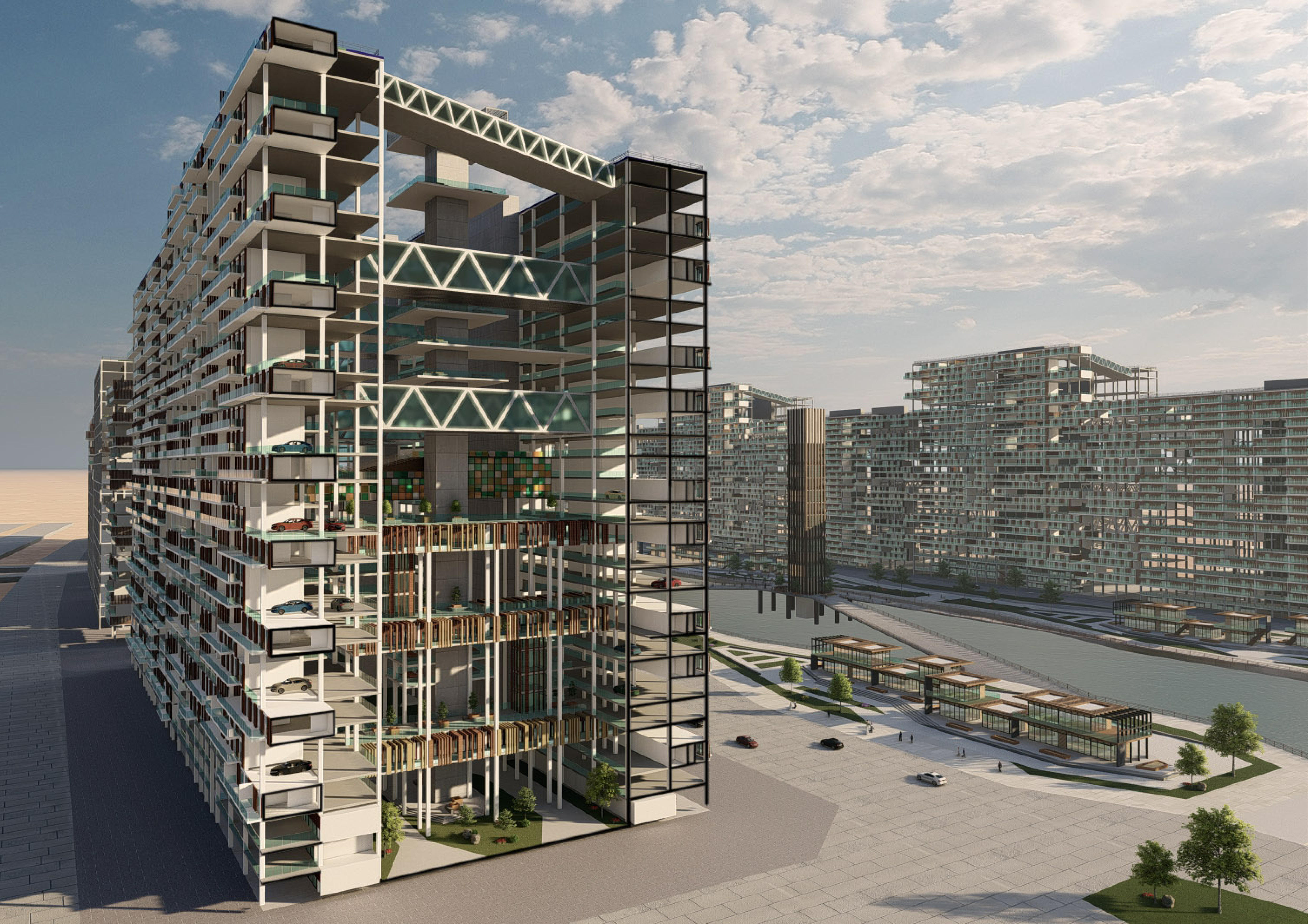 Hydrocity of Ajman represents a place of a sustainable modern mixed-use project offering offices, residential units,commercial and entertainment programs within one tower.