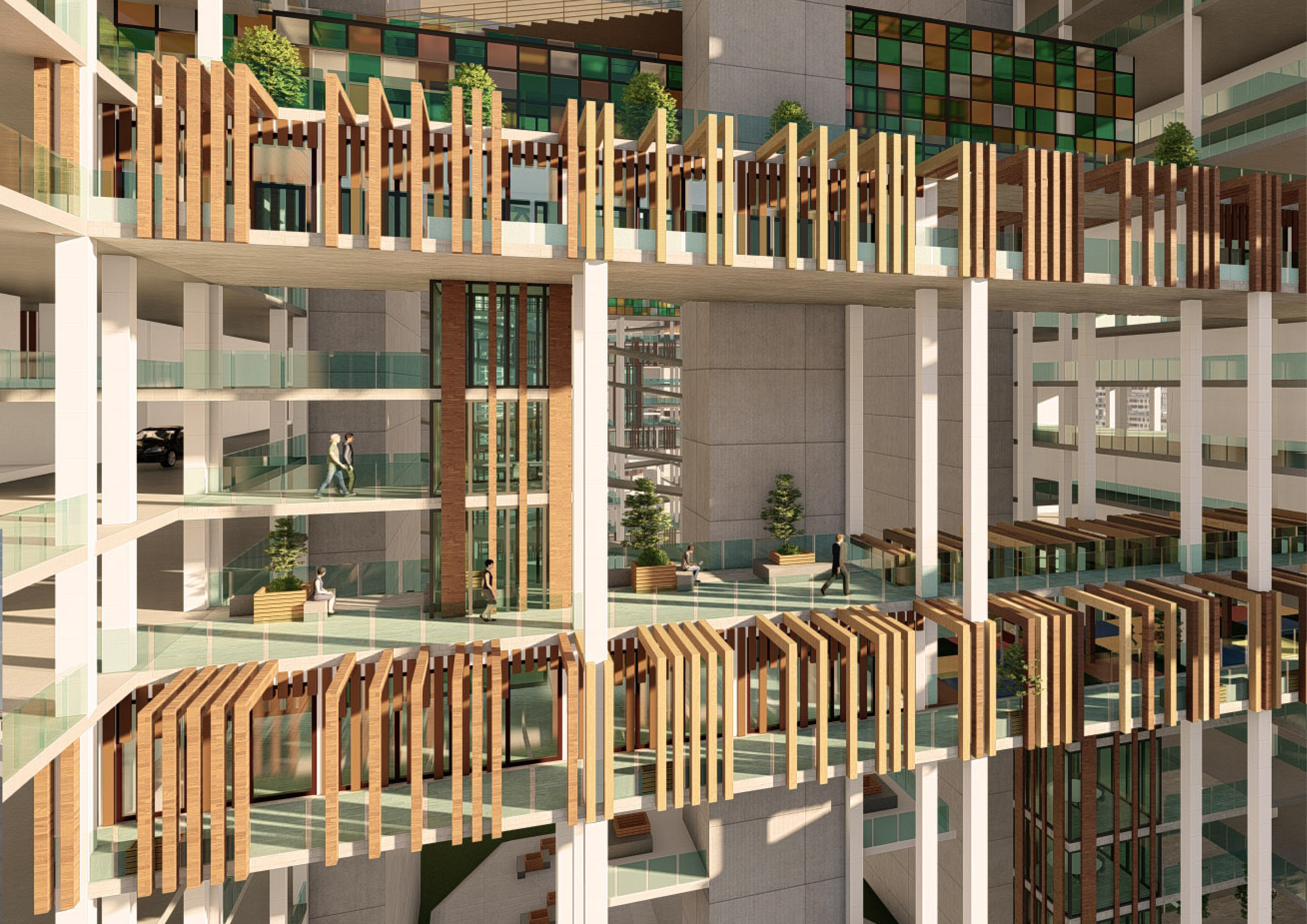 Economic- Each of the towers is mainly designed as an open concrete parking structure with a central courtyard and a modular grid system with modular size program units that would be adapted and converted interchangeably depending on the demand of the economy over time.
