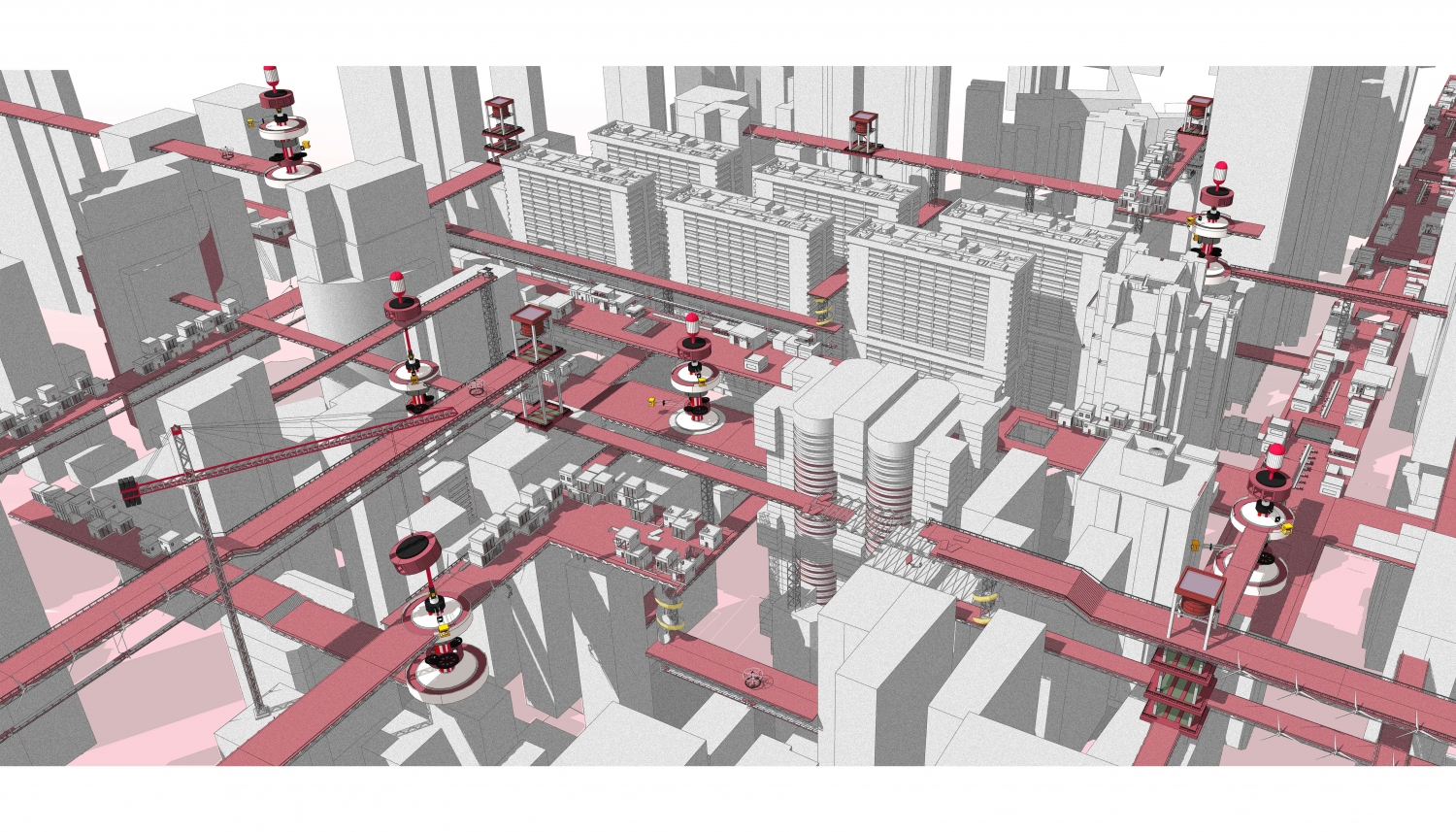 With that in mind, Levitated Community incepts a public or semi-public set of places in which housing and other activities are present, but the most outstanding effect is to give freedom to the people in building and designing their own city as levitated Community envisioned a world of equal opportunity where presence is more important than ownership, where streets extend to the sky to allow the city to be walked and perceived from many points of view, multiplying the layers of passage and permanence, creating a culture of public commons.