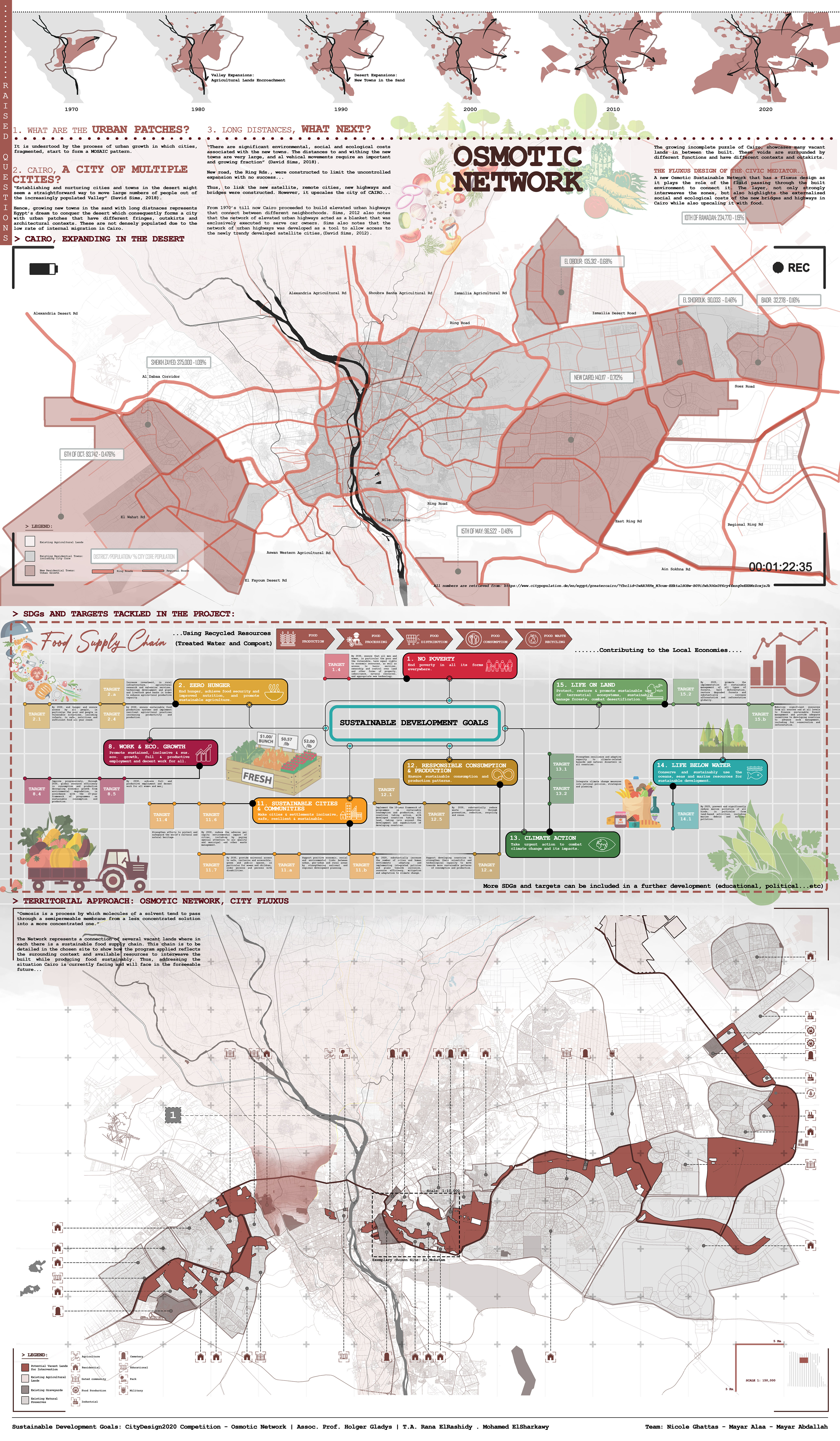 The selected site, Al Mokattam, reflects the concept with “fingers” spanning over 4 lands representing a complete redo, to convey a deep message of the life cycle story while producing food.