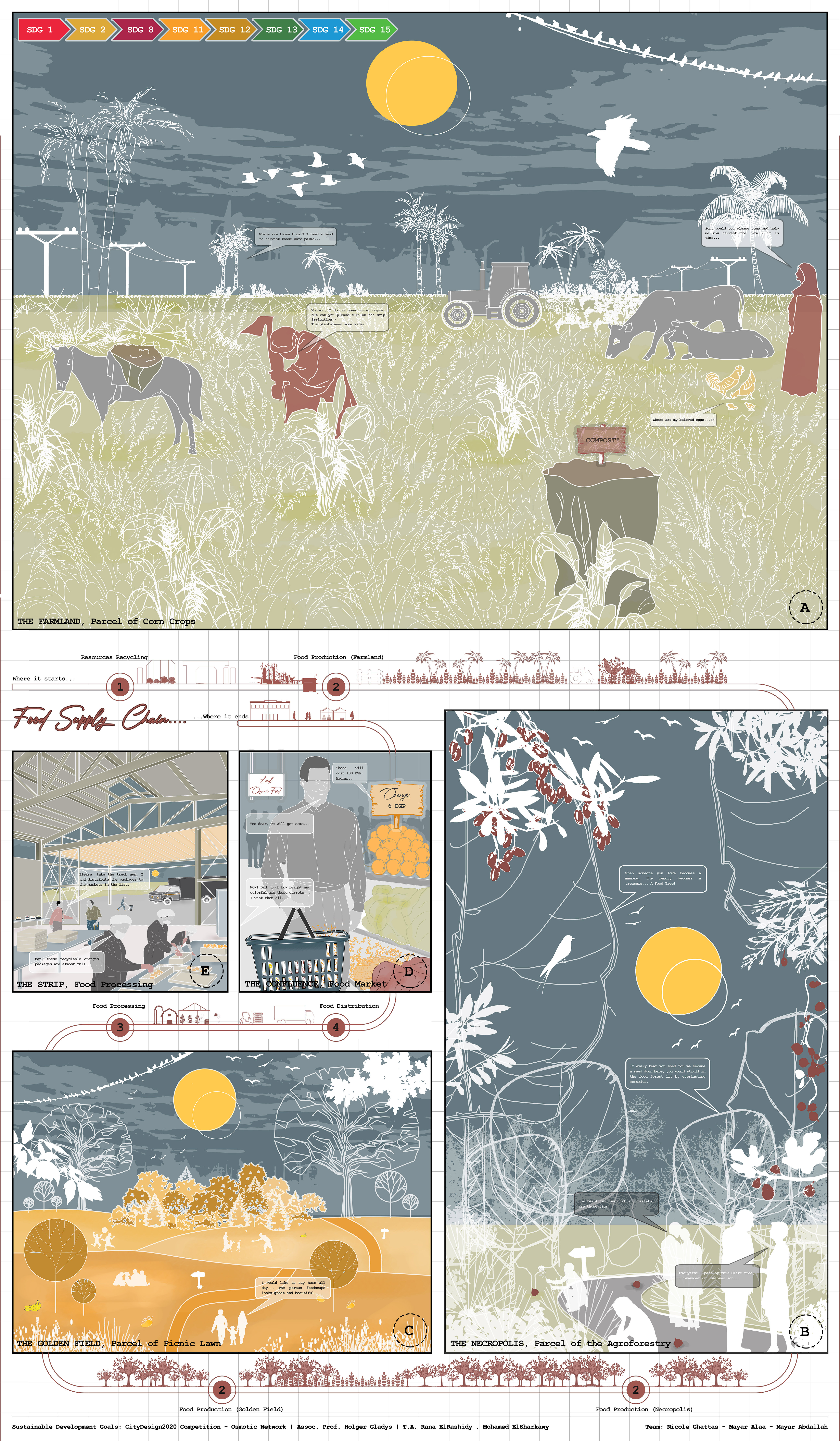 A city of co-existence with shared and regenerated resources creating food security while fighting climate change. Moreover, a caring city that reflects a deeper message of life and foodscapes/socioscapes.