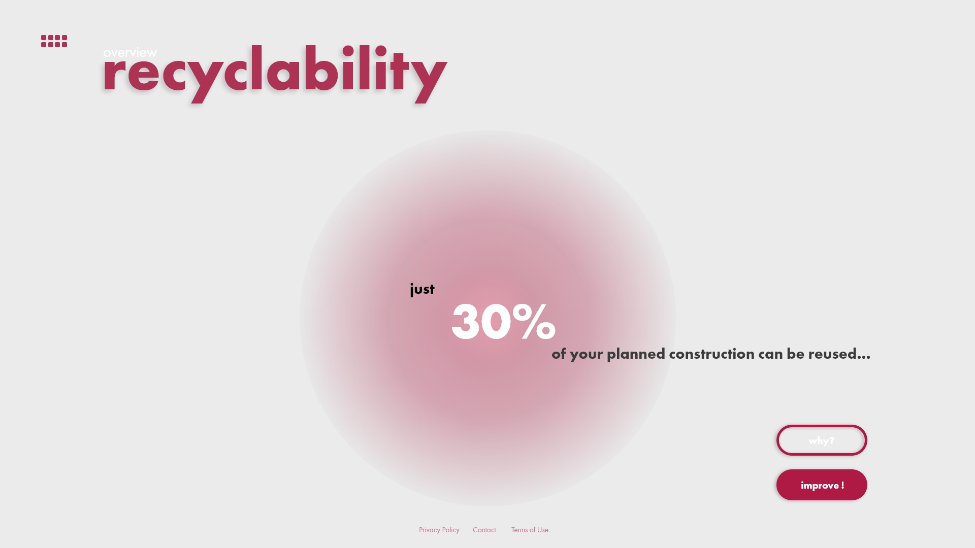 A prerequisite for successful secondary raw materials trading is a high degree of recyclability of the materials. As researches have shown, material recycling as well as product recycling is essential. For successful product recycling, selective deconstruction with the preservation of unmixed and undamaged products is fundamental. Selective deconstruction can only be successful through reversible design. To support this, “reunity” checks the planned constructions of the digital building for reversible and irreversible joints of the components. The user gets shown own planned construction details with specific possibilities for optimization in the digital twin at the push of a button. To optimize material recycling, “reunity” increases the recycling degree by comparing planned raw materials with the raw materials contained in the material database. Here, homogeneity is the goal as well as the necessary connections of the materials in the building bodies themselves. Only if necessary properties are not minimized, “reunity” shows spezific optimization suggestions from the material database.