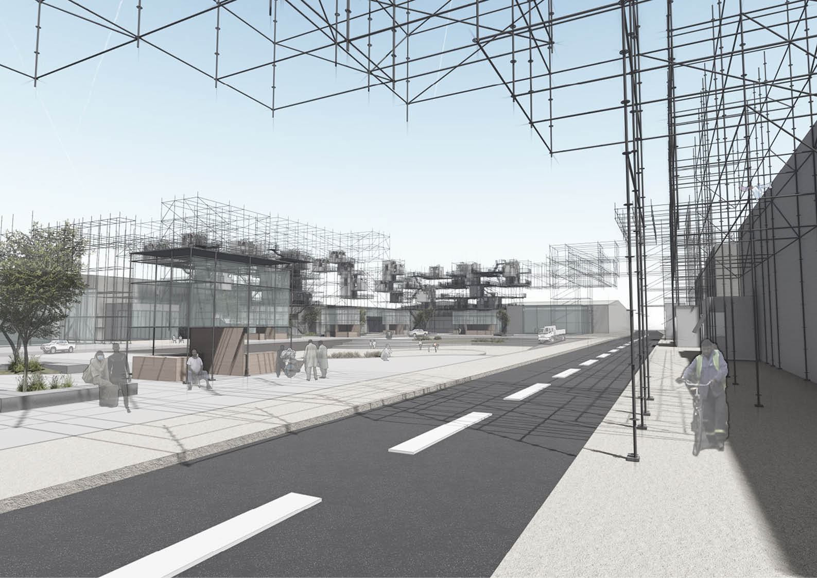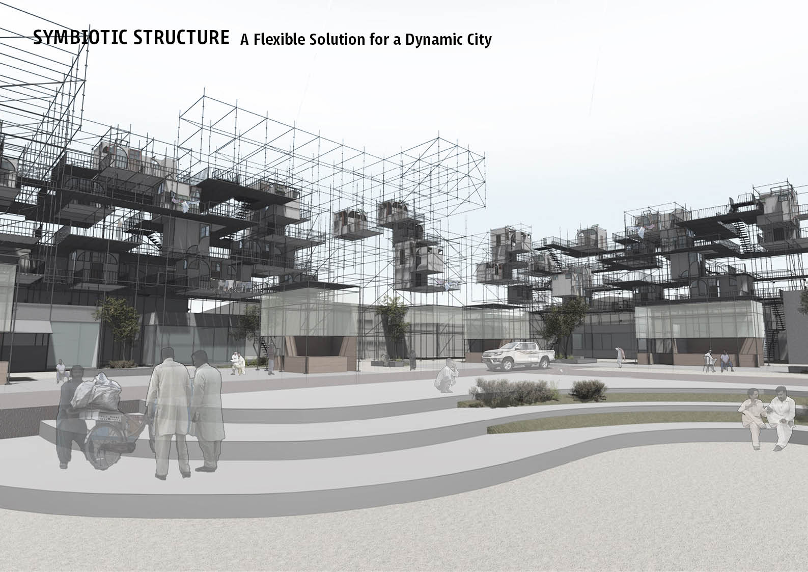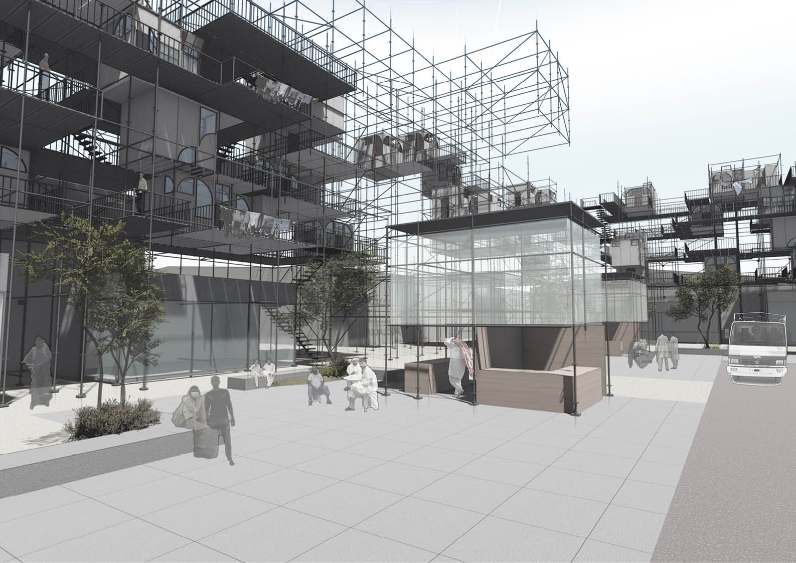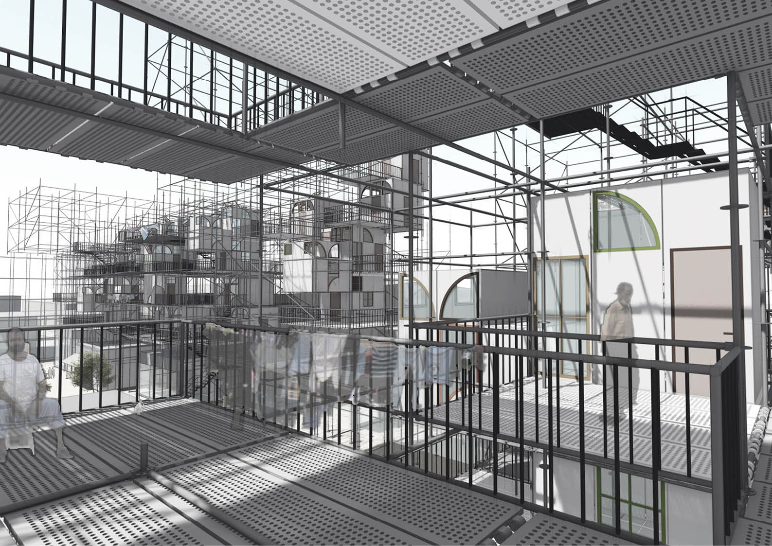 The project is affordable housing that is an assembly process rather than a construction. It is a prototype of housing that could be assembled at various sites with different configurations. This prototype is to activate the inactive and under-used sites of the industrial areas, the housing achieves this by incorporating programs that invite human traffic. This housing has the potential to grow and multiply over time as the economy expands and the demand for housing increases.